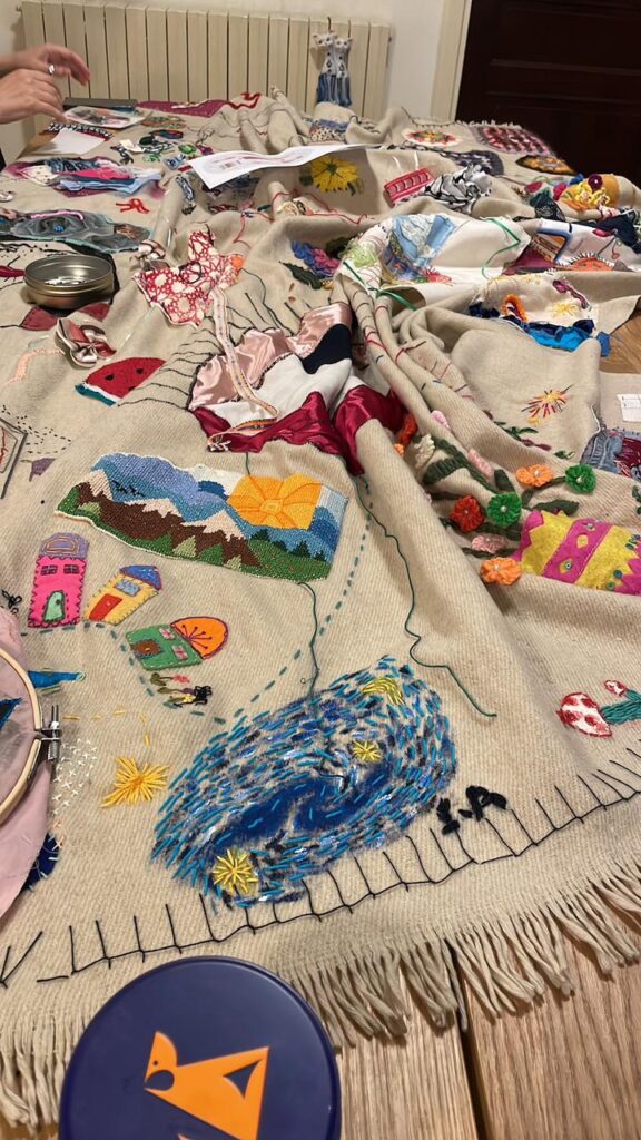 To date, 150 individuals—ranging from participants as young as 8 years old to artists and artisans—have contributed, and the project continues to grow. It has traveled far, with pieces added from the UK, USA, Saudi Arabia, Germany and Chile.
