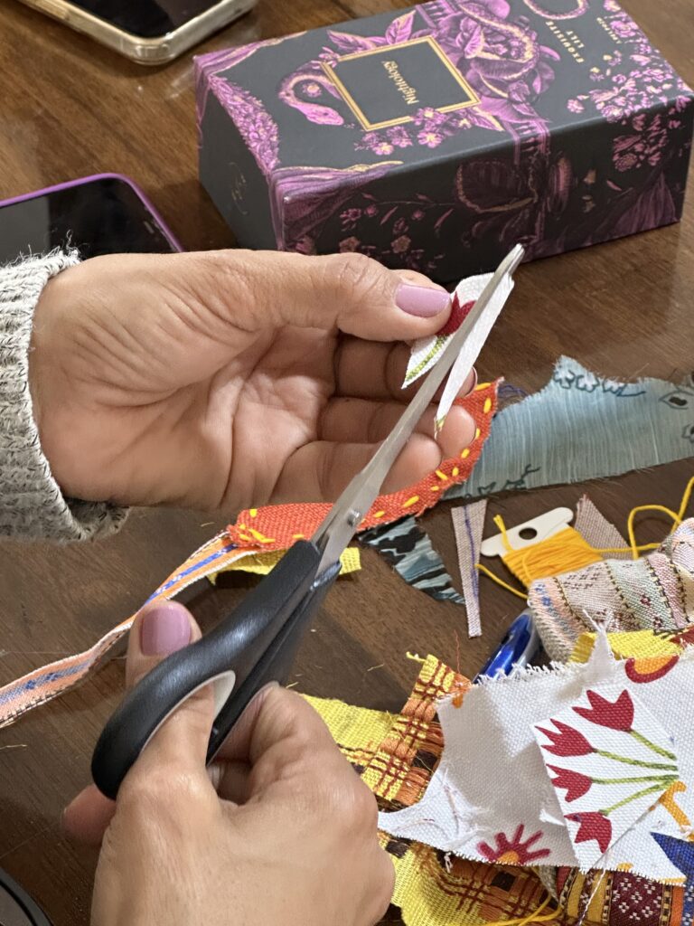 The Traveling Tapestry was created during the Covid Pandemic as a community project to connect people in this physically restrictive period. Relaunched in 2024, the tapestry travels from space to space, whereby each contributor adds their story using a variety of fiber art mediums reflecting their current mindset – whatever they are feeling, seeing or experiencing.
